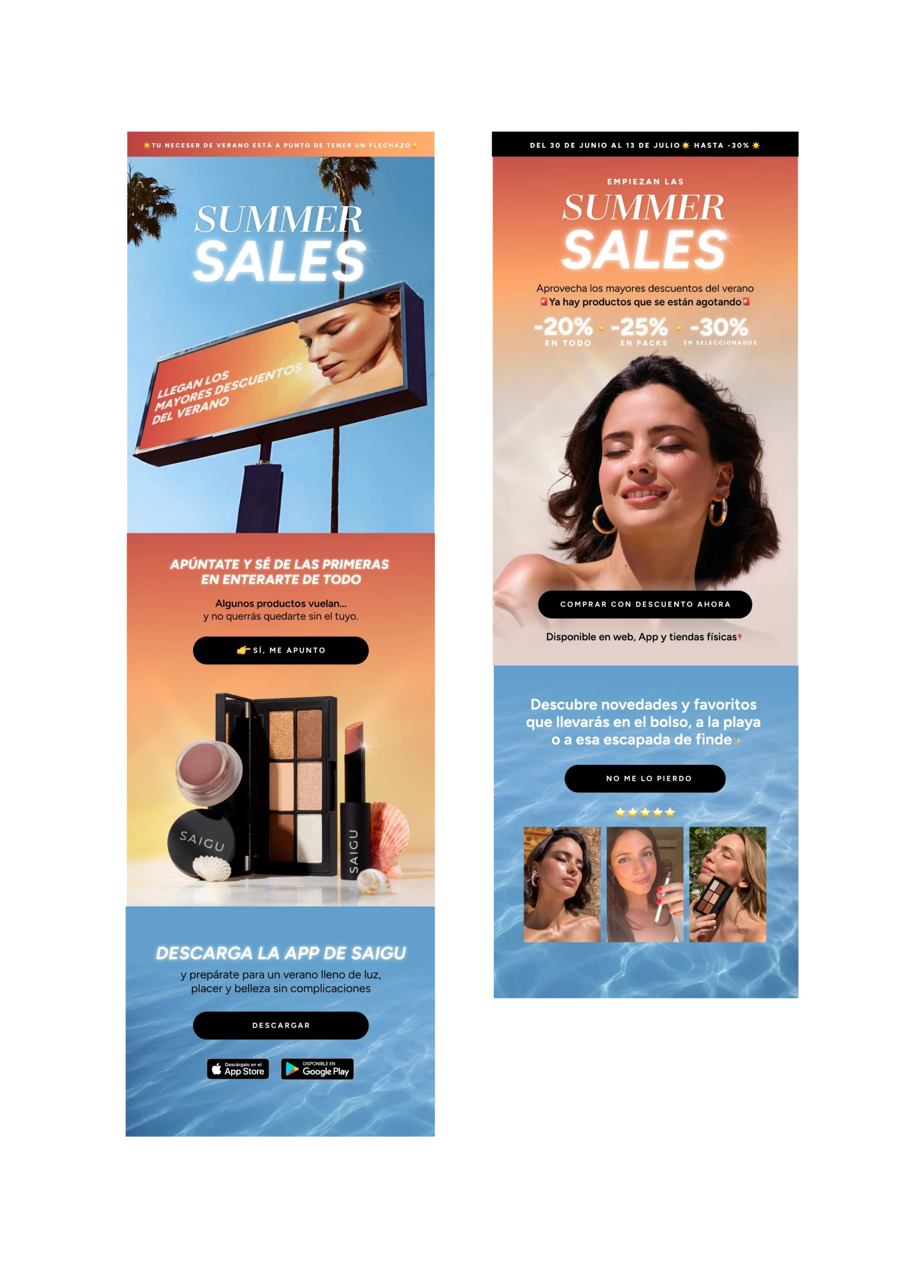 Saigu presenta su campaña de verano con una selección de productos que capturan la esencia mediterránea: texturas frescas, tonos favorecedores y fórmulas que se funden con tu piel como un rayo de sol en calma»